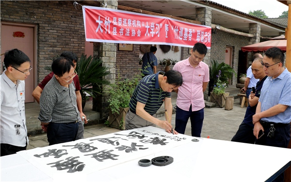 大竹县委巡察机构与县书法协会共同举办的“‘大学习’暨‘竹巡墨香’联谊活动”通过现场座谈交流、重温入党誓词、学习相关文件、赠送红色书籍、书法艺术展示等环节让广大巡察干部既领略了中华传统文化艺术的魅力,又在轻松愉悦的氛围中更加深刻学习、真切领会了习近平在十九大报告中提出的《要坚定文化自信,推动社会主义文化繁荣兴盛》精神,增强了对传统文化的热爱,进一步坚定文化自信,在全面从严治党道路上笃定前行。