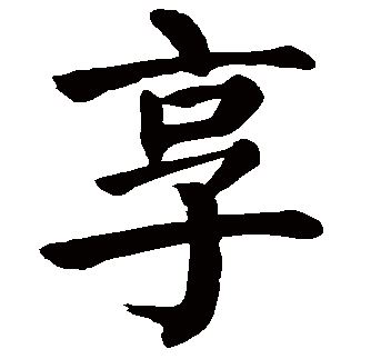 ,像高大台基上建有殿堂之形,象征祭祖的宗庙。《康熙字典》中解释:“按古惟亨字兼三义。后加一画作享,献之。亨加四点作烹,饪之。”即最早时只有“亨”字,它有三义:一是通达、顺利,如词语“亨通”;二是祭献、敬献;三是烧煮。后来为了区分,人们便专以“亨”字指代通达,在“亨”字上加一横得“享”字指代祭献,在“亨”字下加四点得“烹”字指代烹饪。《说文解字》中说:“享,献也”,“享”字本义是向先人、神灵奉献祭品,这一义项目前只见于古文。由此引申,凡是恭敬奉献都可称为“享”,如《史记·司马相如列传》中有“康居西域,重请朝,嵇首来享”,意思是康居等西域诸国再三恳请朝见汉武帝,这里的“享”即指别国使节来访,进献贡物。