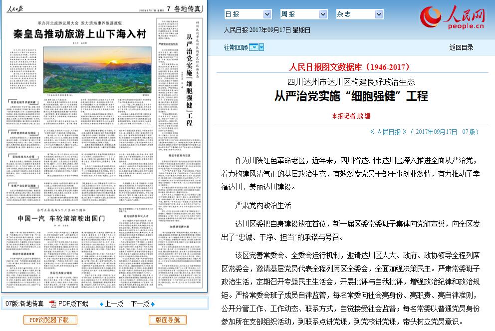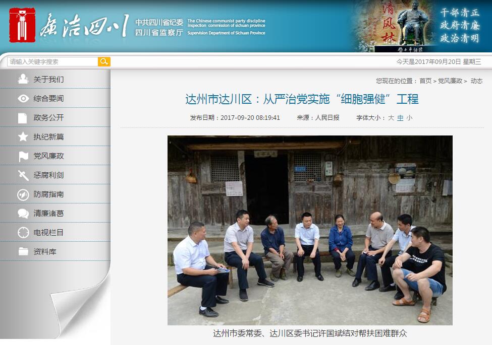 “人民日报”、“廉洁四川”关注达川:从严治党实施“细胞强健”工程