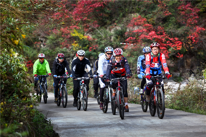 一群骑友你追我赶,驰骋于秋的美景,徜徉于秋的怀抱,美哉、快哉!