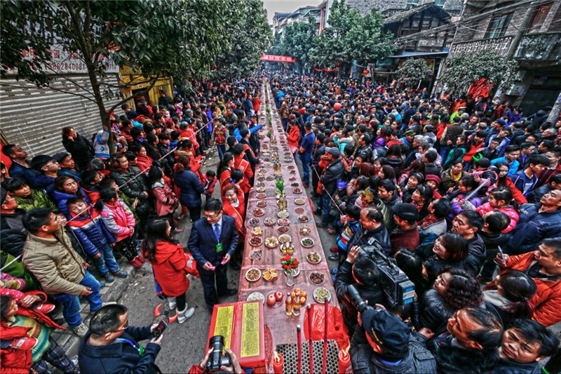 “接龙宴”是开江县甘棠镇最独特的庆祝方式。每年的正月十五,热情好客的甘棠镇人民团结协作齐动手,沿街摆起1500多桌连桌宴,邀请远到而来的客人,齐聚一堂,迎接火龙登场。“接龙宴”不仅洋溢着亲密、和谐的文明乡风,更充分展示了开江县人民勤劳致富、积极向上的生活风采。