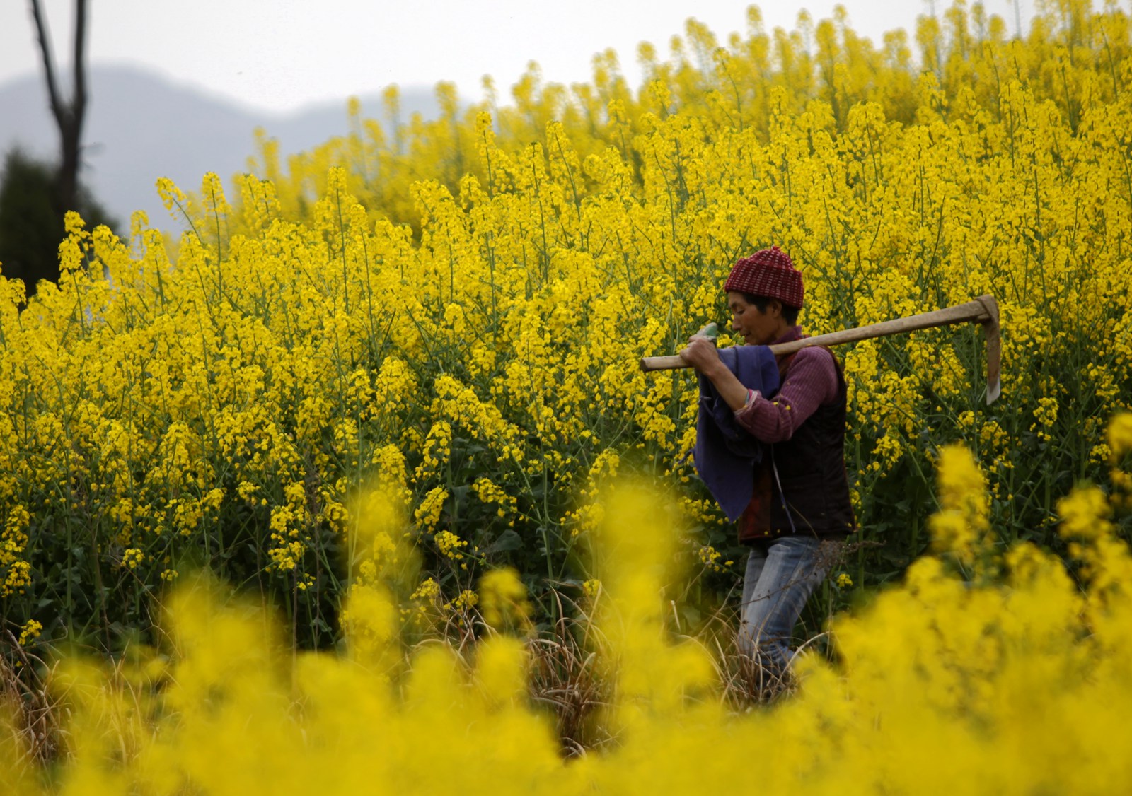 锄禾日当午,汗滴禾下土。翻土壤、除杂草,中午时分,村民辛勤劳作归来。